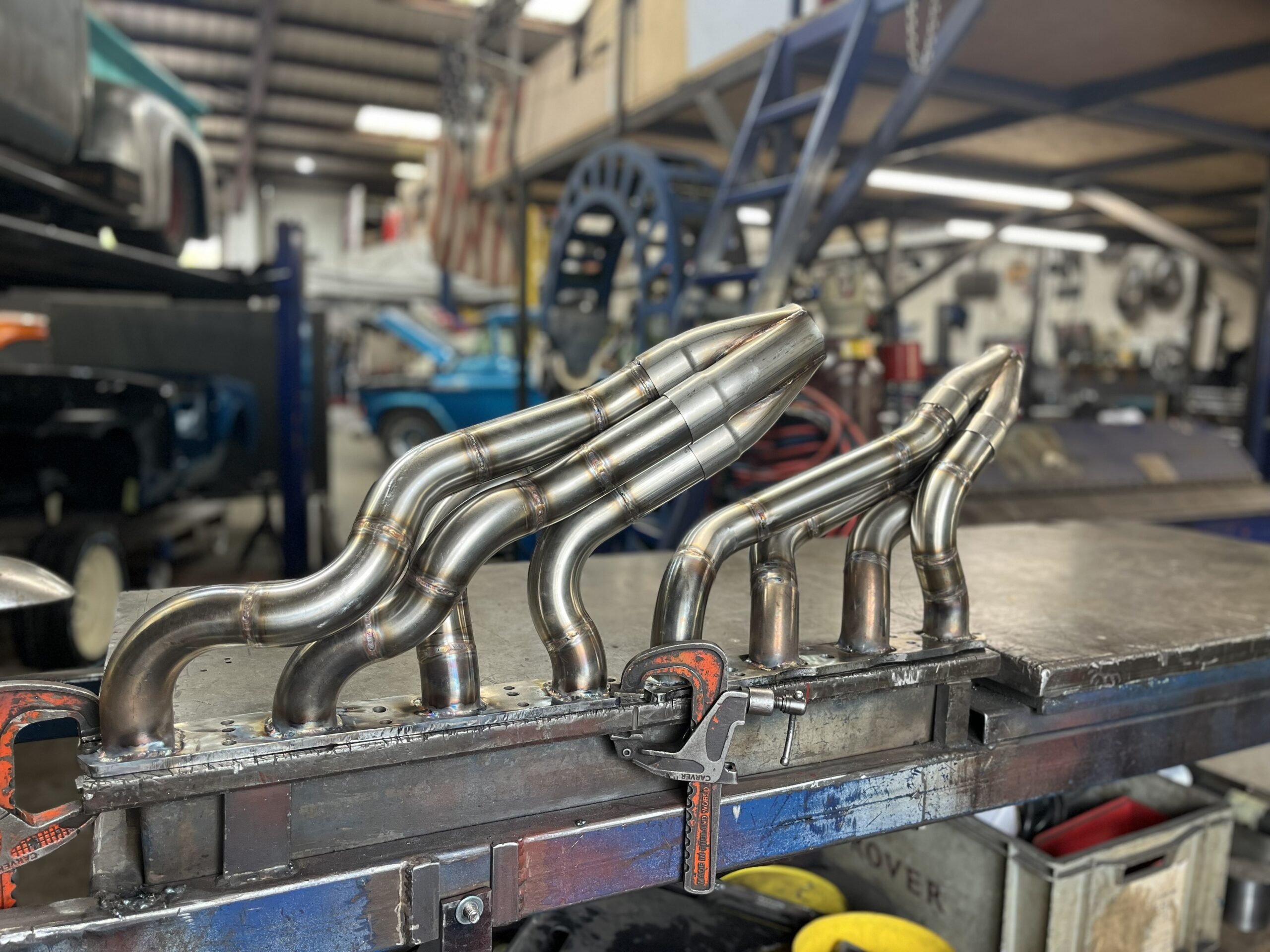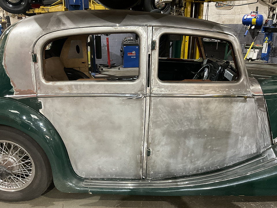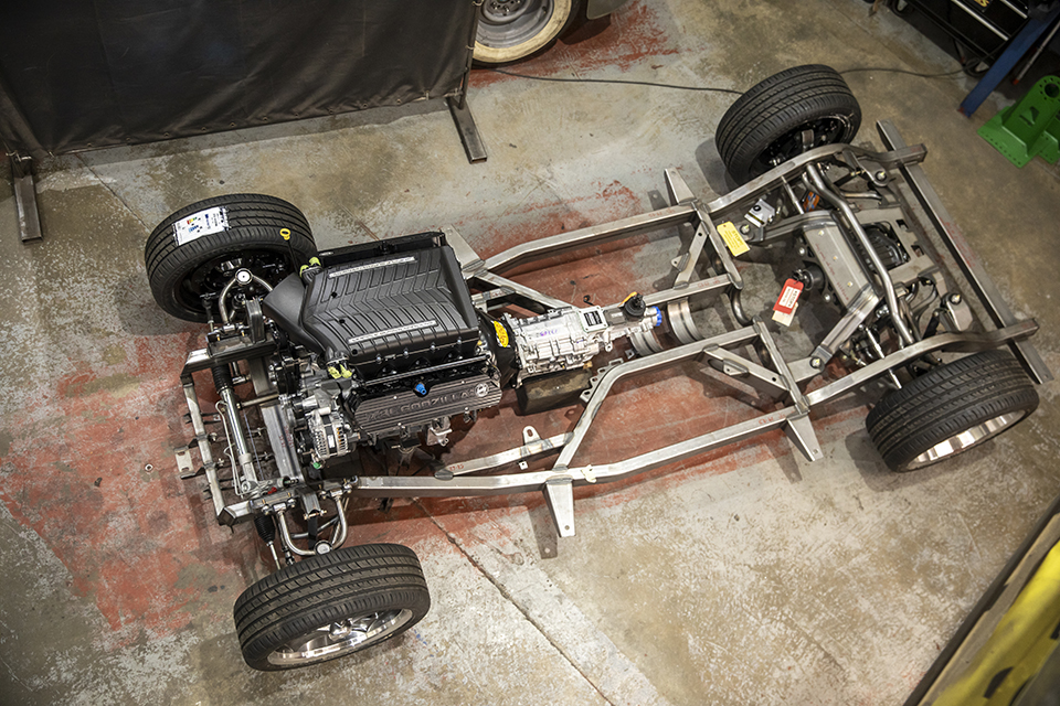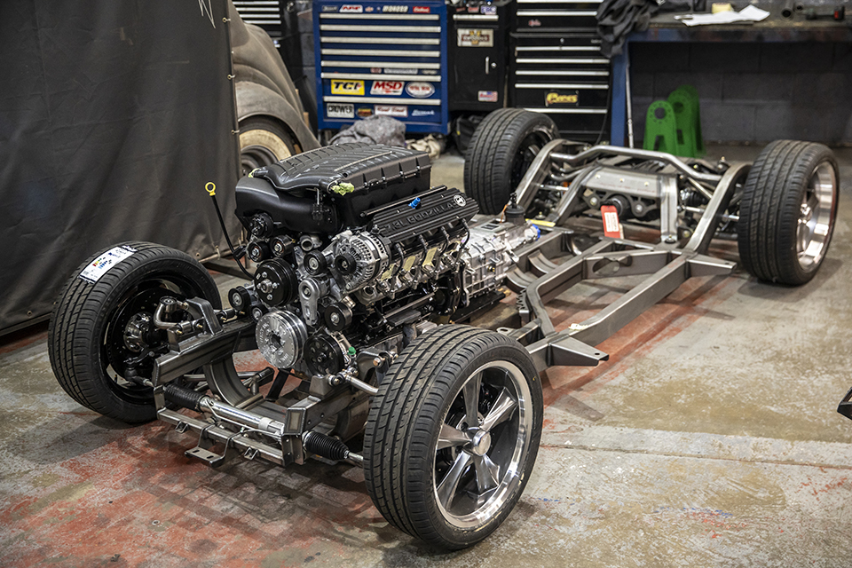 We’re especially excited about this build. This Jaguar MK4 has a custom-built IFS and an E-Type Jag IRS, and sits on E-Type wire wheels with the nostalgic knock-off centres. The car will also sit much lower than standard, with large 14″ custom-made brakes and a Daimler V8 built by the legendary Russ Carpenter.
