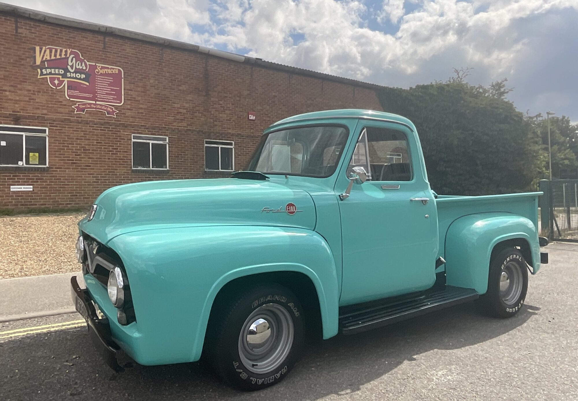 Phil’s gorgeous 1955 Ford F100 in this eye-catching turquoise and black colour scheme came in to our workshop at VGSS for a new Mustang II front end, new front suspension and brakes from Scott’s Hot Rods. She will be getting a full overhaul before she gets sent to the body-shop for an eye-catching new paint job! She started off beautiful, but now she has gone through a bodybuilding phase to look tough and mean. Make sure to check out the arch work we have done to bring the arches closer into the custom-made 20″ wheels. We are super excited to see what she will look like after the overhaul and paint.