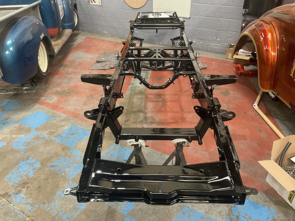 This gorgeous 1955 F100 pick up has come to VGSS for a spicy engine conversion, overhaul and stunning new paint job. The Blueprint SBF engine has now been installed along with the 5 speed Tremec transmission and Mustang II IFS. Recently back from paint, we’re looking forward to reassembling this truck for the customer. This F100 is going to be a beautiful truck, not only to look at but to drive as well!