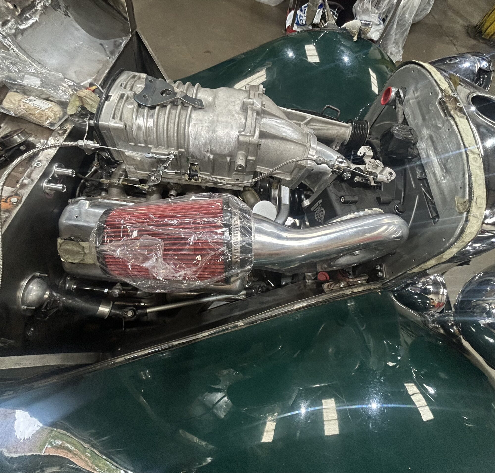 Our team here at VGSS has added a supercharger, along with a fuel injection system from our partners at Aces Fuel. Estimated power will be 300bhp+, which will be put through a modern 7-speed automatic gearbox. This will help this English classic keep up with today’s modern traffic – it might even show up a few at the lights! Inside will be fully loaded with full leather interior, heated seats, AC, electric windows, and central locking. Not only that, but there will also be the latest music system and satnav – everything that is expected from a luxury car of today. There will be all the usual touches you get from VGSS, including our custom stainless steel headers and exhaust system and custom-made aluminium radiator.