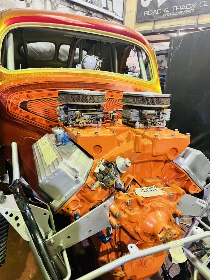 rebuild with Eagle cams and uprated pistons. It has a 9” rear axle and a dropped I-Beam sat on 32 rails and a Rod Line body. A long term project that should be getting a lot more updates soon!